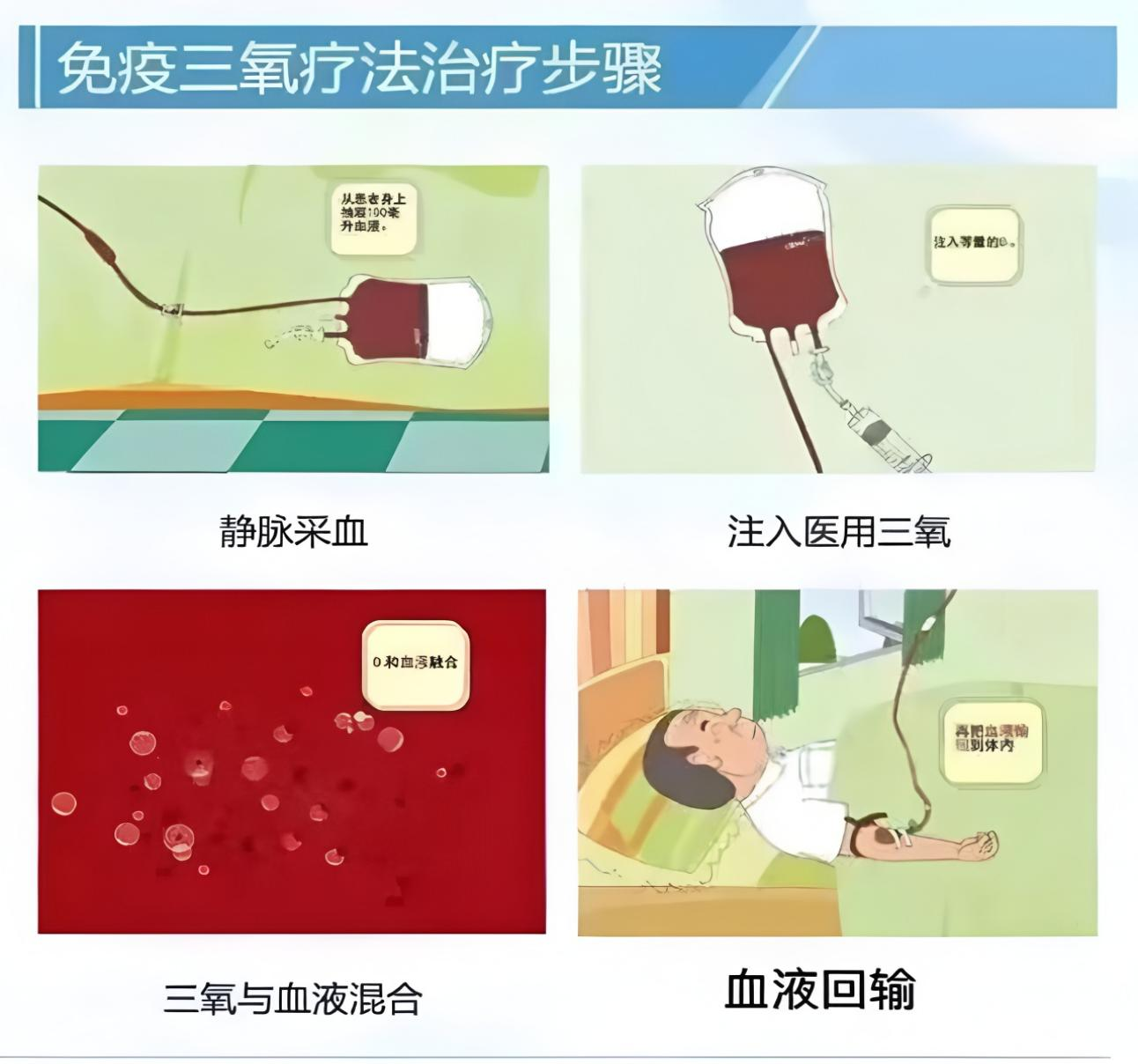 三氧自体血疗法,是一种利用医用三氧(O₃)与患者自身血液进行等量混匀,再回输到体内的治疗方法。其治疗原理主要包括“三个激活”、“四个清除”和“五个改善”: