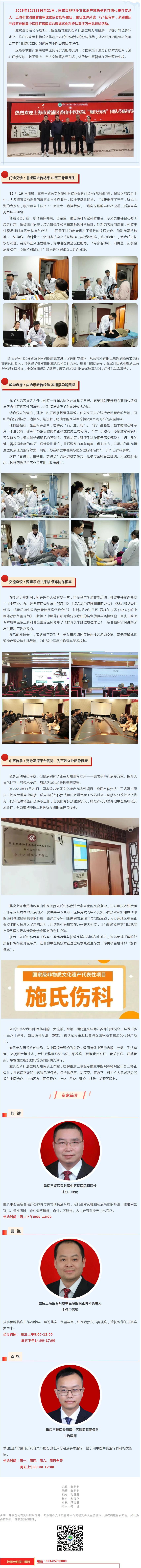 【中医传承】国家级“非遗”施氏伤科疗法代表性传承人、上海市黄浦区香山中医医院骨伤科主任孙波一行来院开展技术指导及服务工作