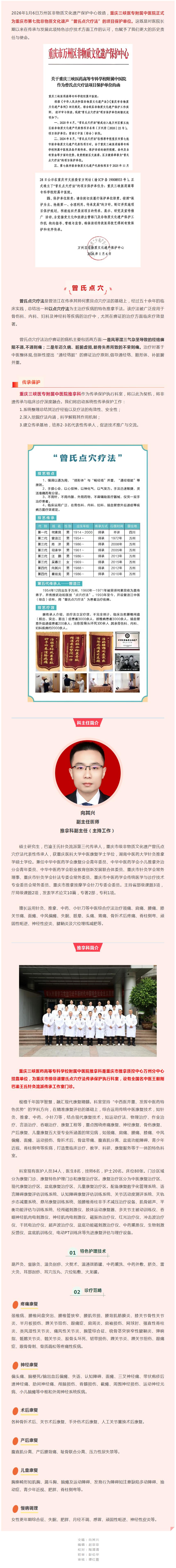 【中医特色】重庆三峡医专附属中医院正式列为重庆市级非物质文化遗产“曾氏点穴疗法”保护单位