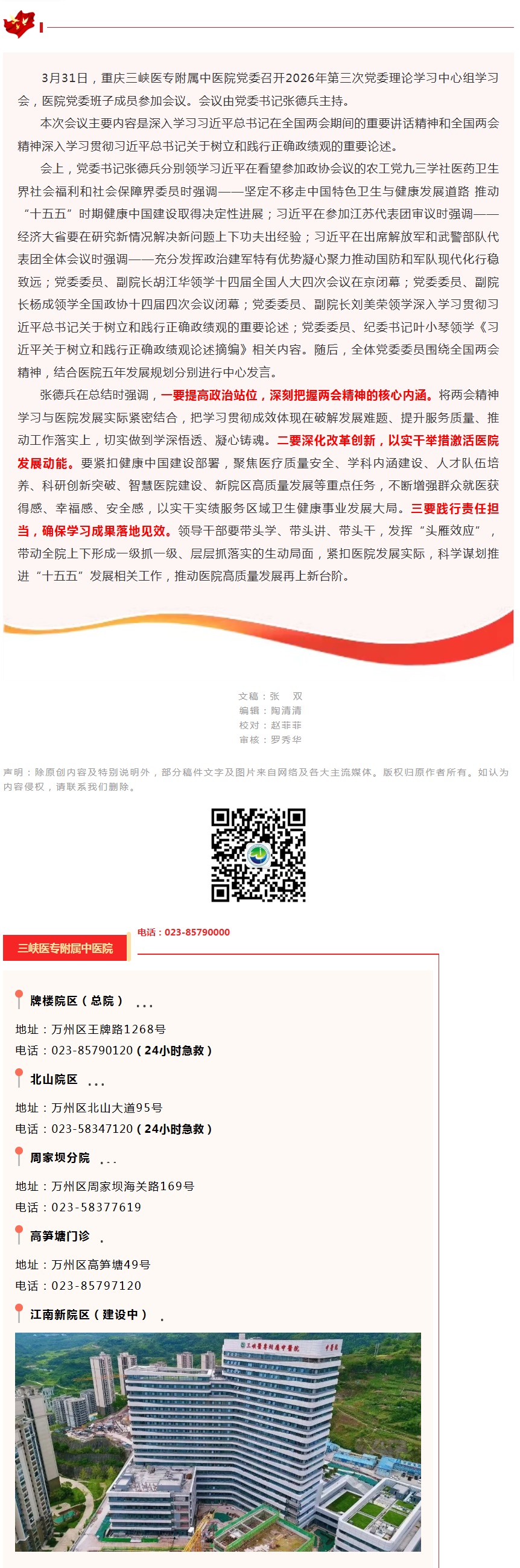 【医院要闻】重庆三峡医药高等专科学校附属中医院召开2026年第三次党委理论学习中心组学习会