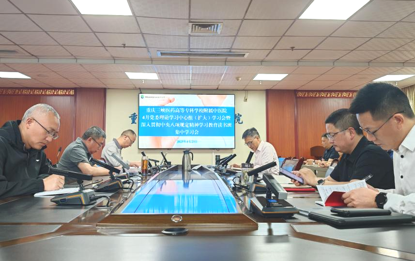 为扎实开展深入贯彻中央八项规定精神学习教育,推进作风建设常态化长效化,日前,重庆三峡医专附属中医院召开4月党委理论学习中心组(扩大)学习会暨深入贯彻中央八项规定精神学习教育读书班集中学习会,深入学习贯彻习近平总书记关于加强党的作风建设的重要论述和关于宗教工作的重要论述。医院在家领导班子成员、行政职能科室全体中层干部、各党支部书记参加了会议。会议由党委书记张德兵主持。