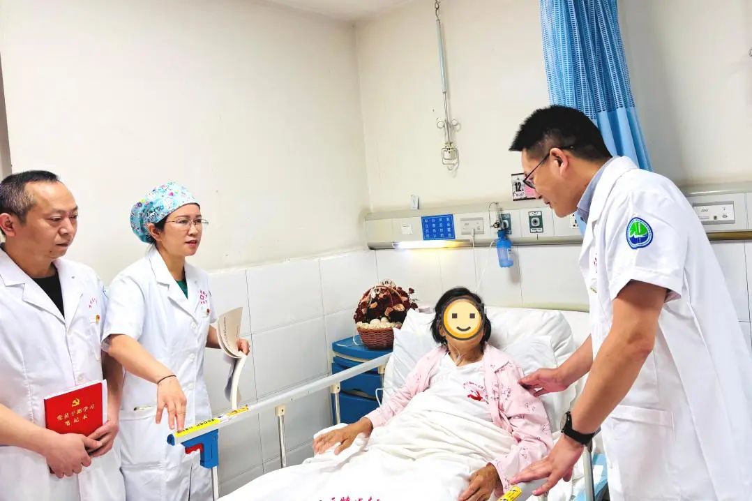 7月31日下午3时,在重庆三峡医专附属中医院党委委员、副院长刘美荣与医院临床一支部书记罗云勇的带领下,支部党员怀着崇敬的心情走进骨伤科关节外科病区。大家脚步轻缓地来到秦某清老人的病床前。她激动地缓缓坐起,岁月在脸上刻下了深深的痕迹,却掩不住这位老党员眼中对党的挚爱光芒。