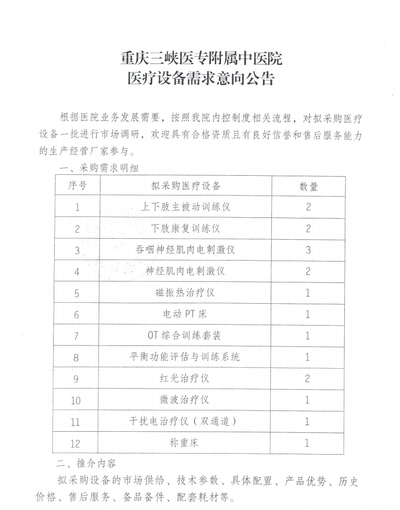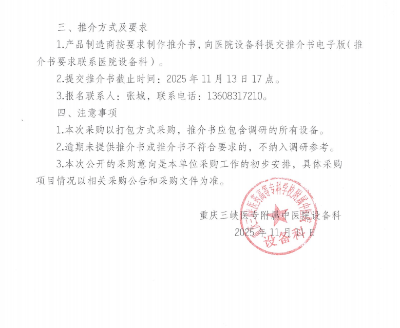 医疗设备需求意向公告(2025.11.11)