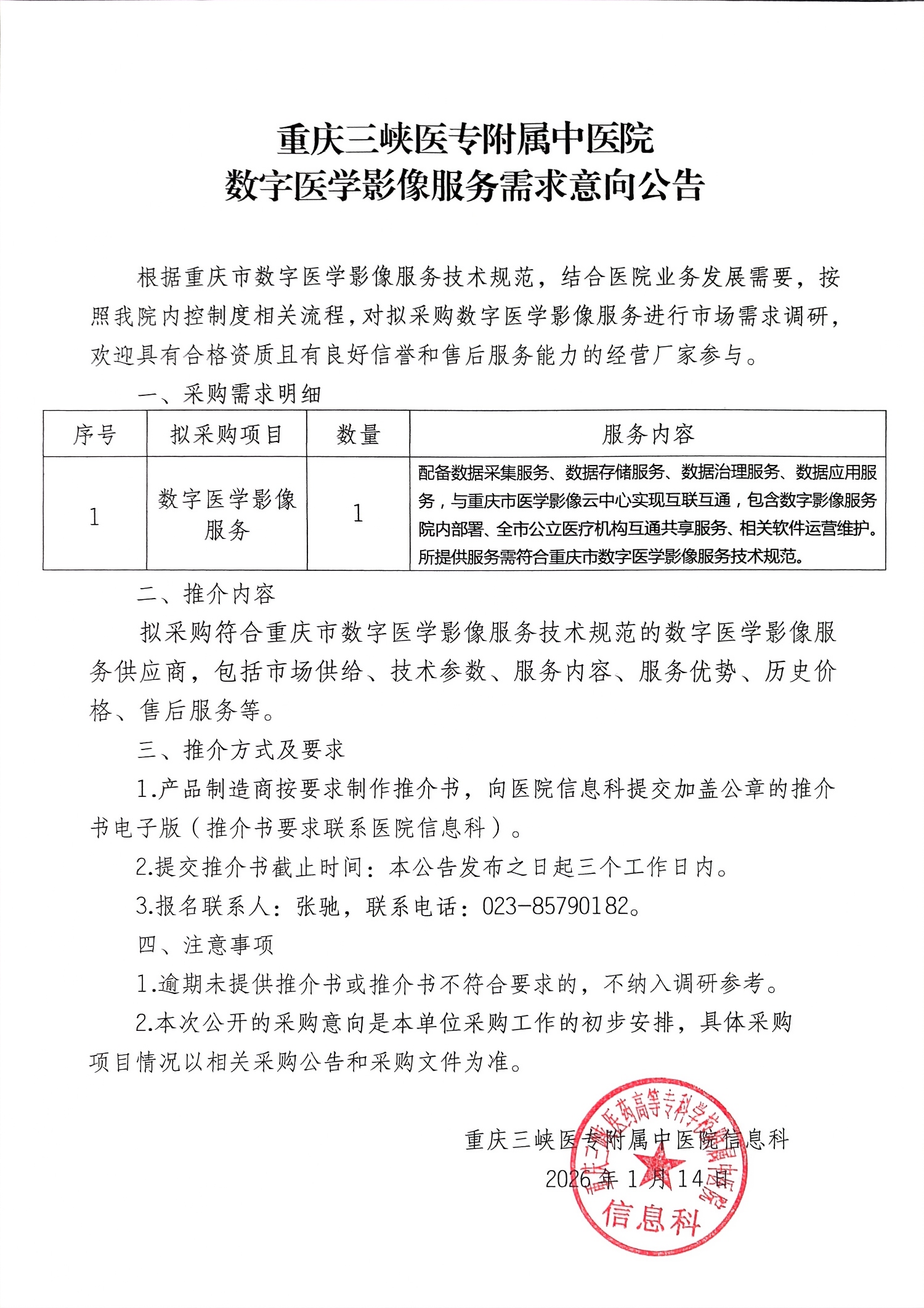 数字医学影像服务需求意向公告